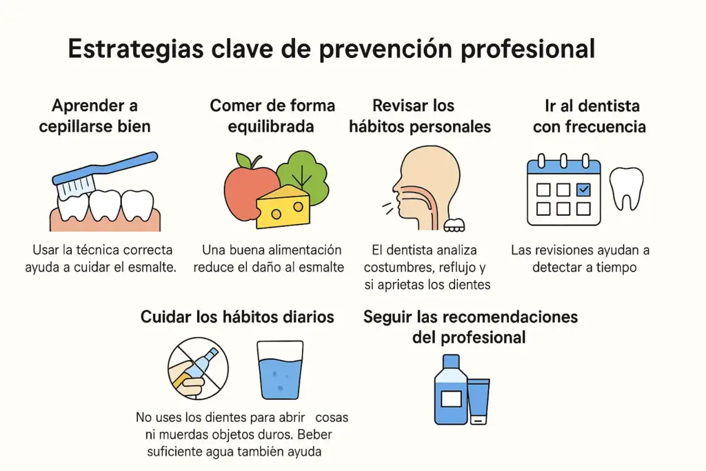 • Ir al dentista con frecuencia: Las revisiones ayudan a detectar a tiempo si el esmalte se está desgastando. Así se pueden tomar medidas antes de que avance.