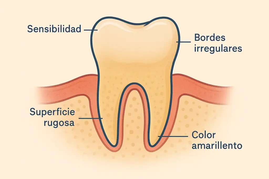 • Textura áspera: La superficie del diente puede dejar de sentirse lisa. Esto puede ser señal de erosión.